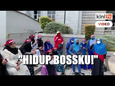 'Hidup Bossku!' - Penyokong Najib berkumpul di luar Istana Kehakiman.Woiii makcik...balik woii nanak nasi pakcik hang nak makan ...esok kalau tak motong dan kait sawit hangpa nak makan pa woiii